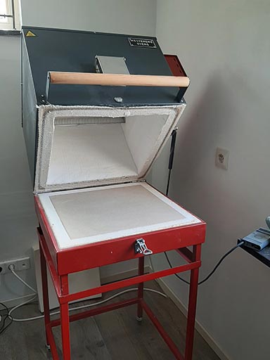Bij het maken van mijn kunstvoorwerpen maak ik gebruik van de techniek van glasfusing, een Engelse term voor glasversmelting. Dat gebeurt in een oven, waarin bij hoge temperatuur twee of meer lagen glas tot één geheel worden versmolten.